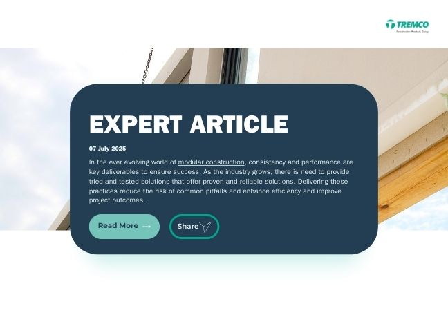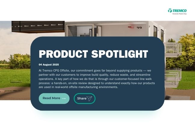 Tremco CPG’s Offsite Technical Support Team ensures modular construction projects run smoothly by resolving technical challenges early. From fire performance and airtightness to weatherproofing and product compatibility, their consultative approach reduces risk, saves time, and delivers consistent quality across every build