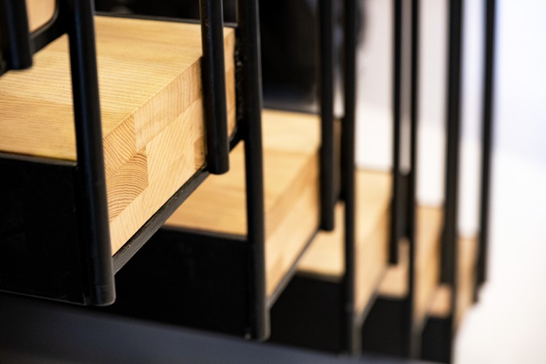 The wooden steps of the staircase were constructed using the fast-curing PU700 foam adhesive and bonded to the steel structure with the SP350 elastic adhesive, ideal for joints that require a little flexibility.