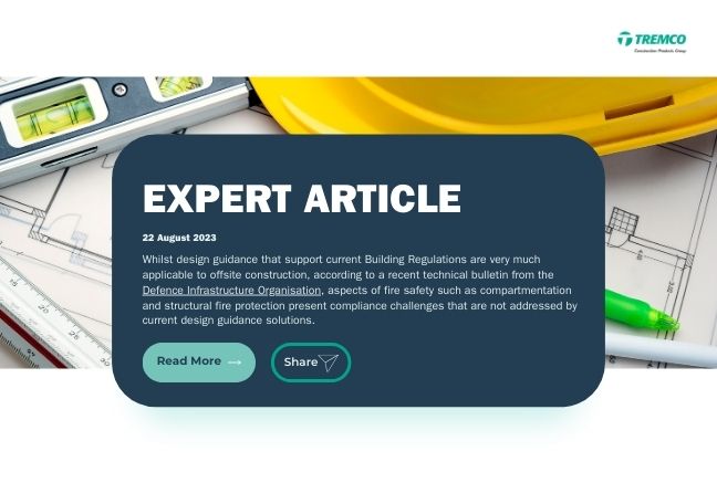 Whilst design guidance that support current Building Regulations are very much applicable to offsite construction, according to a recent technical bulletin from the Defence Infrastructure Organisation, aspects of fire safety such as compartmentation and structural fire protection present compliance challenges that are not addressed by current design guidance solutions.