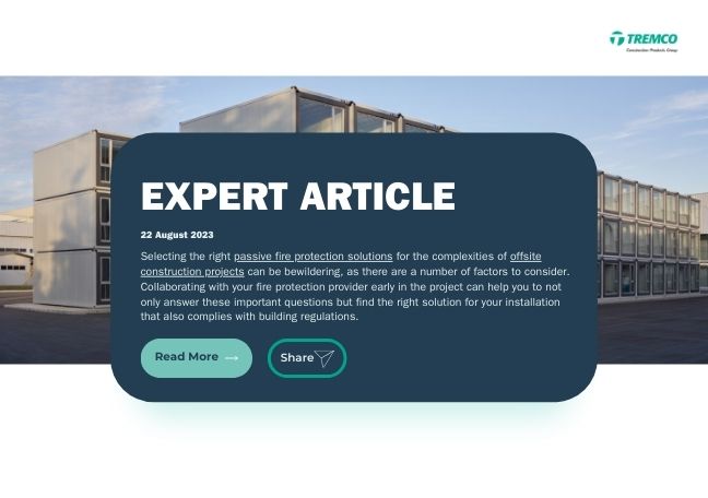 Passive fire protection plays a crucial role in the safe construction and maintenance of all building types. However, when it comes to offsite construction, it is a well-known fact there are numerous fire safety challenges to be considered at the outset in order to achieve a safe, compliant installation that will protect the module and its inhabitants throughout the lifetime of the structure.