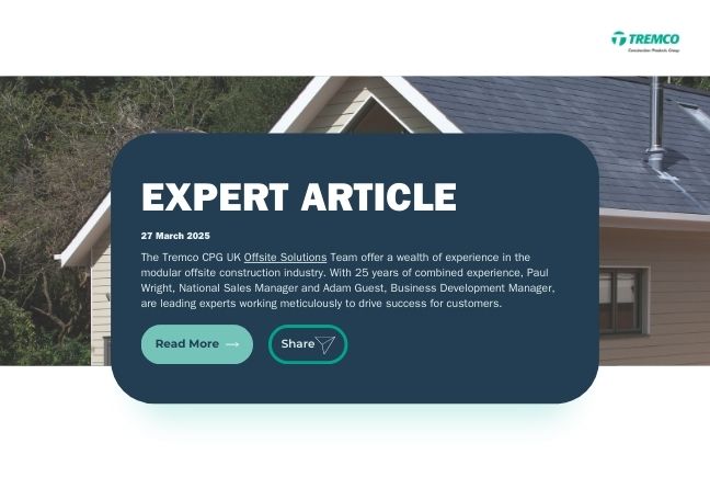 The Tremco CPG UK Offsite Solutions Team offer a wealth of experience in the modular offsite construction industry. With 25 years of combined experience, Paul Wright, National Sales Manager and Adam Guest, Business Development Manager, are leading experts working meticulously to drive success for customers.