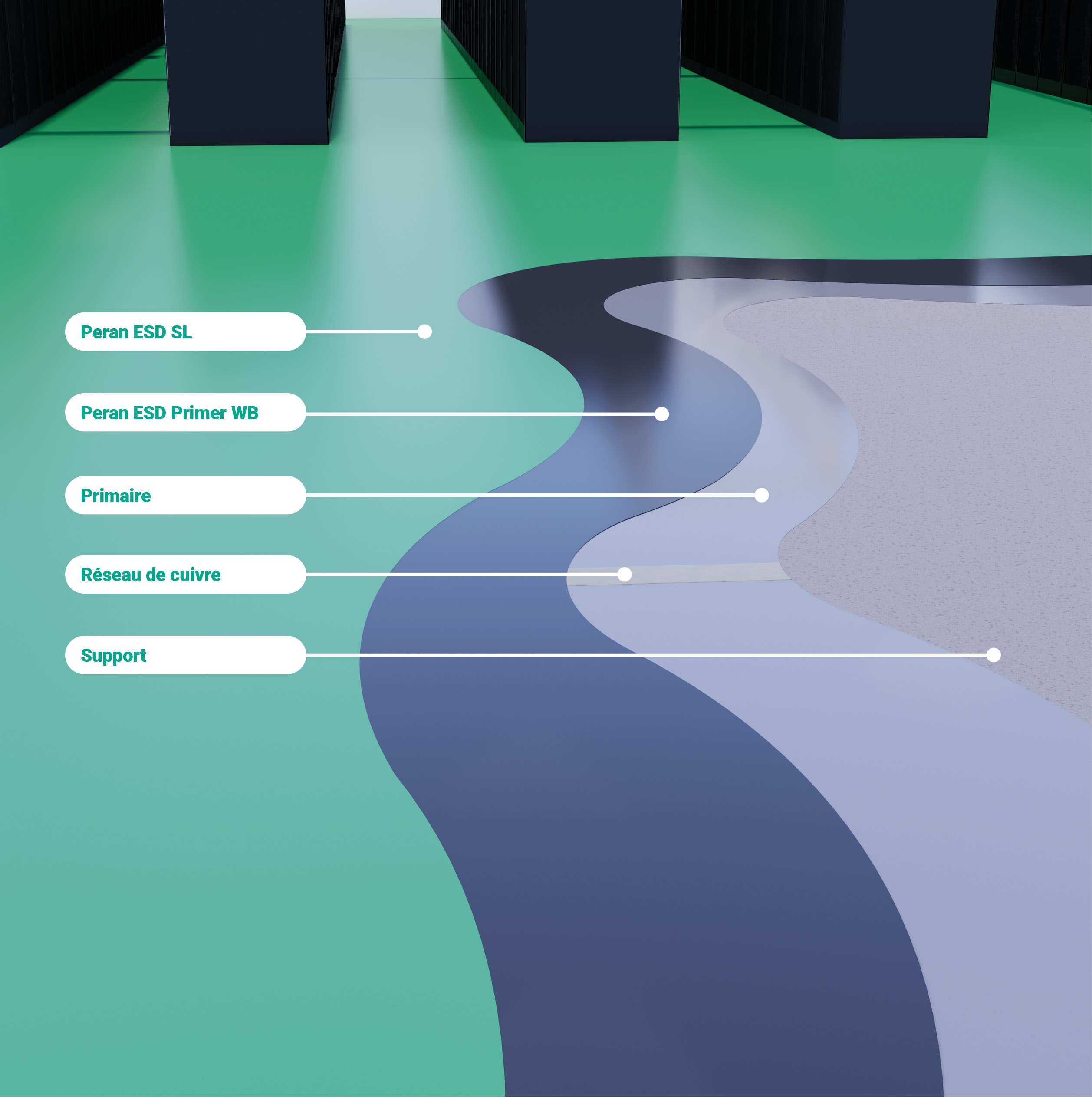 Flowcrete transforme les sols en véritables atouts techniques : antistatiques, hygiéniques et résistants. Nos systèmes garantissent un contrôle optimal des décharges électrostatiques (ESD), essentiel dans les salles serveurs et les zones de supervision.