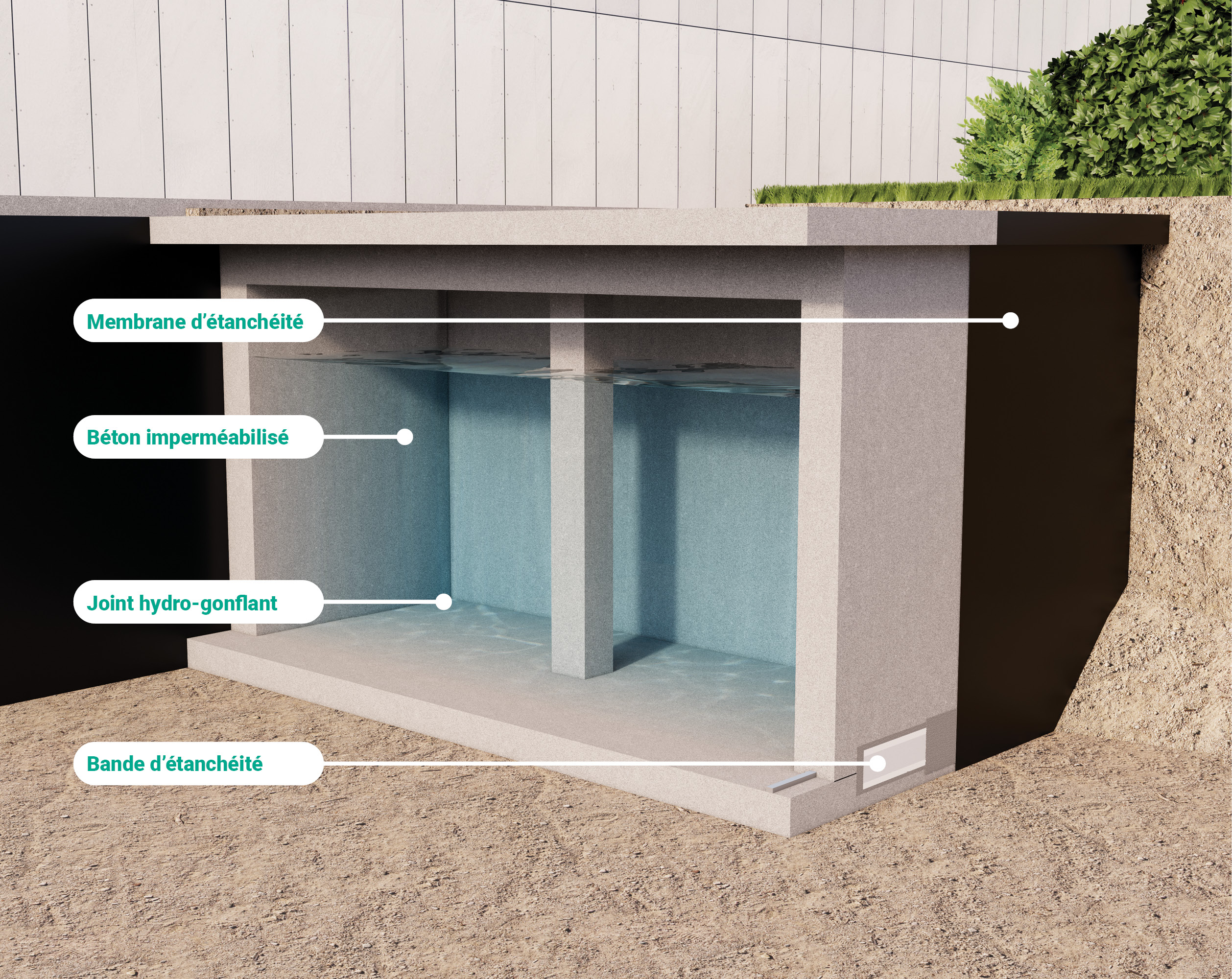 Les solutions Vandex assurent une étanchéité durable des structures enterrées et des réservoirs d’eau, garantissant la fiabilité des systèmes de refroidissement critiques des data centres.